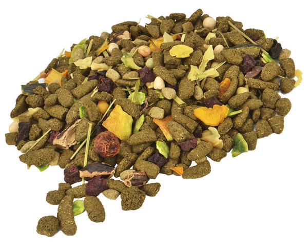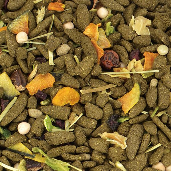 - メインペレット※(チモシー、オーチャードグラス、イングリッシュライグラス、スムースメドーグラス、メドーフェスク、トールフェスク、シロツメグサ、アカツメグサ、メドーフォックステイル、オオバコ、タンポポ、ヤロー、エンドウ豆、人参、パースニップ)、イナゴマメ、乾燥カボチャ、乾燥キャベツ、ビーツ、イエローピース、グリーンピース、チモシー、ローズヒップ、リンシード、大豆タンパク、ミネラル類(硫酸鉄、酸化マンガン、酸化亜鉛、硫酸銅、ヨウ素酸カルシウム、亜セレン酸ナトリウム)、フラクトオリゴ糖、キンセンカ、他