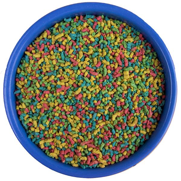 フルーツフレーバーのカラフルなペレットです。ビタミン、ミネラル、カルシウム、アミノ酸をバランスよく配合。
