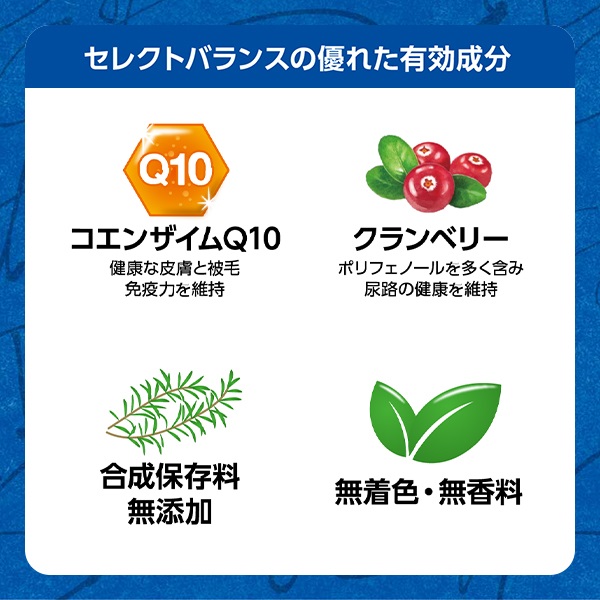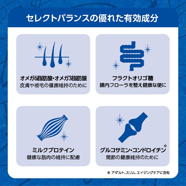 ・活動量の減少に合わせ、カロリー控えめ(セレクトバランス アダルト ラムと比べ、約4%減)