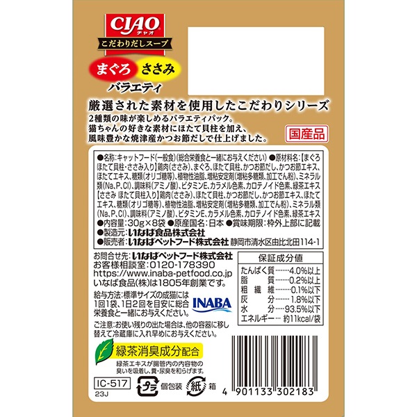 - 【まぐろ ほたて貝柱・ささみ入り】鶏肉(ささみ)、まぐろ、ほたて貝柱、かつお節だし、かつお節エキス、ほたてエキス、糖類(オリゴ糖等)、植物性油脂、増粘安定剤(増粘多糖類、加工でん粉)、ミネラル類(Na、P、Cl)、調味料(アミノ酸)、ビタミンE、カラメル色素、カロテノイド色素、緑茶エキス【ささみ ほたて貝柱入り】鶏肉(ささみ)、ほたて貝柱、かつお節だし、かつお節エキス、ほたてエキス、糖類(オリゴ糖等)、植物性油脂、増粘安定剤(増粘多糖類、加工でん粉)、ミネラル類(Na、P、Cl)、調味料(アミノ酸)、ビタミンE、カラメル色素、カロテノイド色素、緑茶エキス