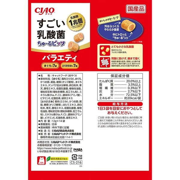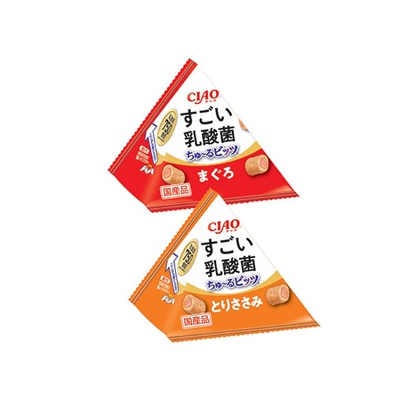 外はふっくら、中にトロッとちゅ~るが入ったおやつ。乳酸菌1兆個配合(1袋あたり750億個)で猫ちゃんの健康を維持しお腹の調子を保ちます。