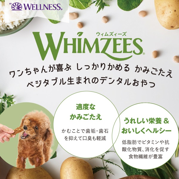 【噛んで健康】ウィムズィーズを噛むことで、歯垢・歯石を抑え、口臭も軽減。