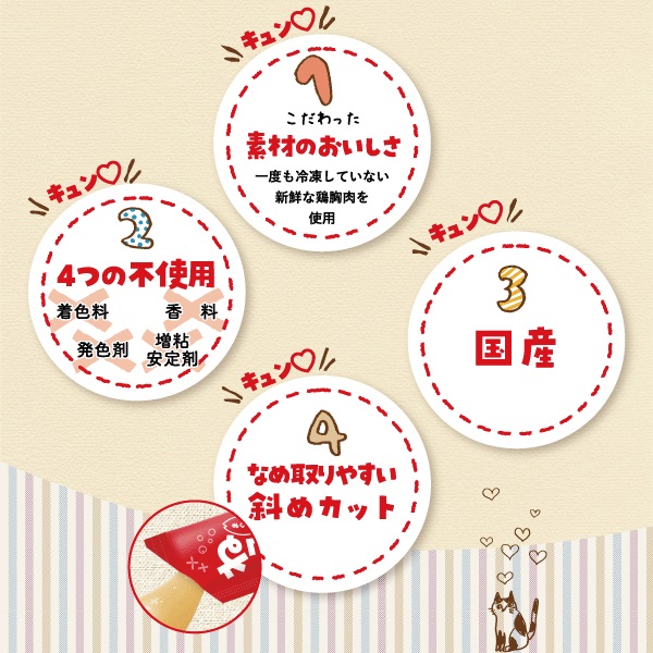 - 鶏むね肉、でん粉、フィッシュエキス、かつおエキス