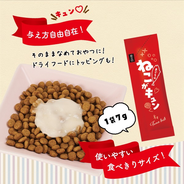 スティックからそのまま与えても、フードのトッピングとしても。