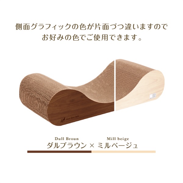 中央のカーブが爪とぎはもちろん、ソファのようにくつろぐときも、とっても気持ちいいカタチです。