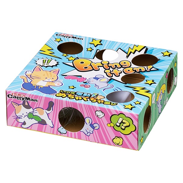 天然羽根使用で狩猟本能を刺激、どこでも遊べる!・各面に複数の穴が開いた箱の中で、鳥の羽根が右回り・左回りをランダムに繰り返すおもちゃ。・乾電池式でどこでも遊べます。・自動センサー付き※3分放置するとスリープします。