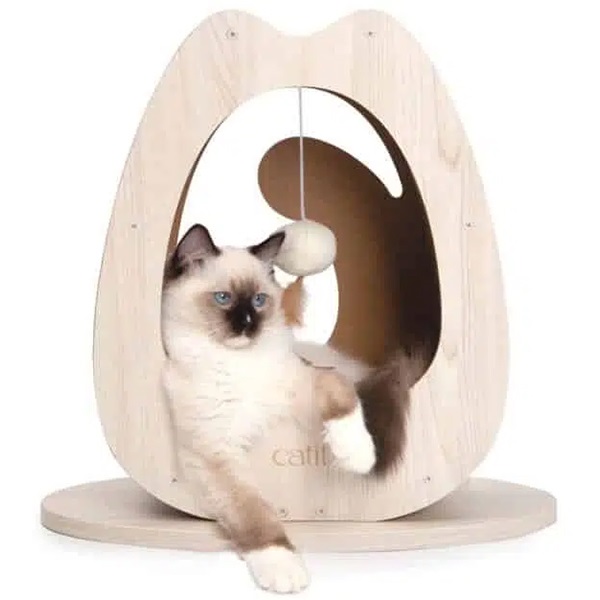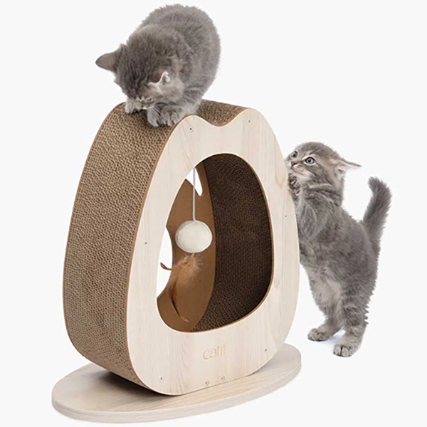 インテリアになじむスタイリッシュな爪とぎ。やわらかな色と丸みを帯びた猫の特徴を組み合わせたクラシックな美しさを兼ね揃えた爪とぎです。高品質で交換可能なダンボールとオーク調仕上げの板で構成されています。