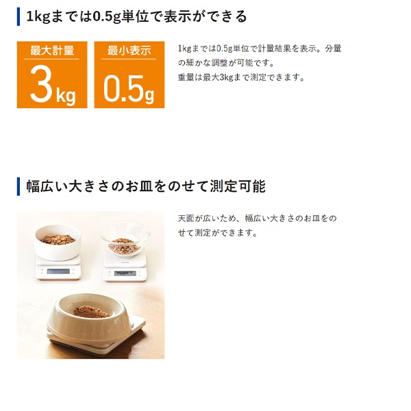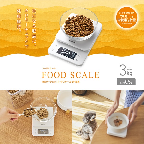 のせるだけでフードのカロリーと栄養素を計量できる、カロリーチェックフードスケールです。