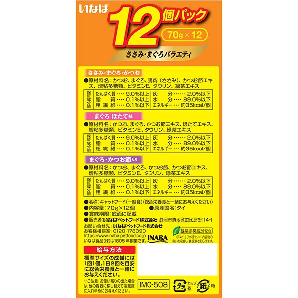 ささみ・まぐろ・かつお×4個、まぐろ ほたて味×4個、まぐろ・かつお節入り×4個