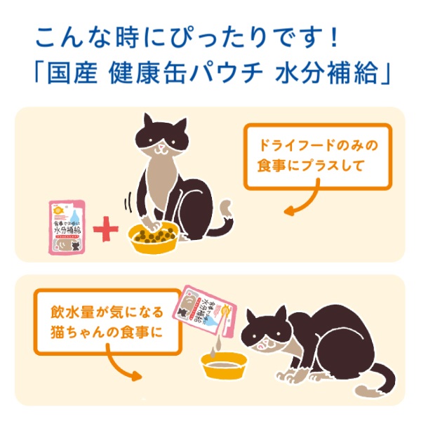水分と電解質を上手に補給できるように、猫の体液に近いミネラルバランスに調整。さらに猫の体液の浸透圧に近くなるように、成分濃度を調整し、猫の健康維持をサポート。ドライフードの食事が多い猫や、お水をあまり飲んでくれない猫に好適。ペーストタイプ。