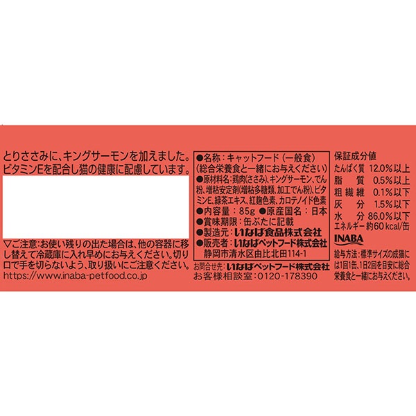 高たんぱくで低脂肪のささみに、キングサーモンを合わせました。緑茶成分配合。