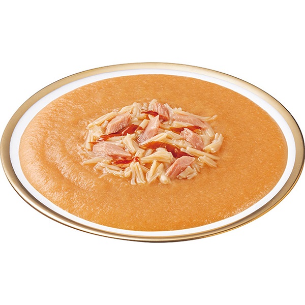 - 鶏肉(ささみ)、かつお、かつお節エキス、かつお節、チキンエキス(イミダゾールジペプチド含有)、糖類(オリゴ糖等)、N-アセチルグルコサミン、DHA・EPA含有精製魚油、殺菌乳酸菌、植物性油脂、増粘安定剤(加工でん粉、増粘多糖類)、ミネラル類(Na、P、Cl)、キトサン、調味料(アミノ酸)、ビタミンE、紅麹色素、緑茶エキス、ヘマトコッカス藻色素(アスタキサンチン含有)