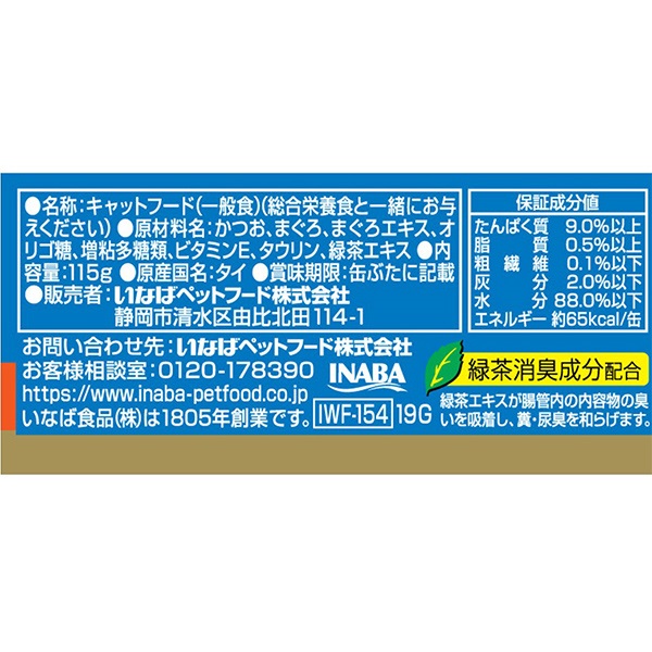 - かつお、まぐろ、まぐろエキス、オリゴ糖、増粘多糖類、ビタミンE、タウリン、緑茶エキス