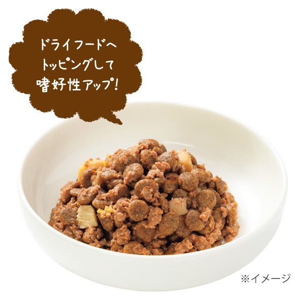 - 肉類(有機ビーフ※、有機ポーク※、有機チキン※)、油脂類※、ミネラル類、ビタミン類、増粘安定剤(カラギーナン) ※有機認定業者の原材料を使用し、有機ビーフは20%を使用。