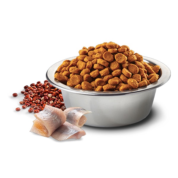 - ニシン、乾燥ニシン、エンドウ豆デンプン、ニシン油、キヌア、亜麻仁、ココナッツ、ウコン、イヌリン、フラクトオリゴ糖、酵母抽出物、オオバコ、乾燥ビール酵母、アロエベラゲル濃縮物、緑茶抽出物、ローズマリー抽出物、アミノ酸類(DL-メチオニン、タウリン)、ビタミン類(A、B1、B2、B6、B12、C、D3、E、ナイアシン、パントテン酸、ビオチン、葉酸、コリン、ベータカロテン)、ミネラル類(ナトリウム、カリウム、クロライド、カルシウム、リン、イオウ、鉄、銅、亜鉛、マンガン)、酸化防止剤(植物油抽出トコフェロール)