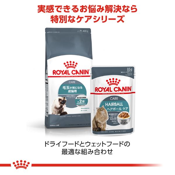 *ロイヤルカナン調べ - ヘアボールケア成分が配合されていない当社製品と比較