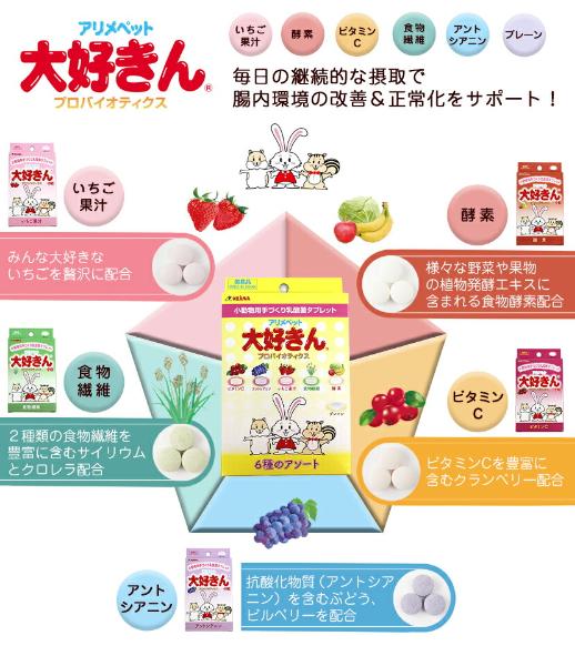 - 澱粉、コーンスターチ、脱脂粉乳、粉糖、オリゴ糖、ビルベリーエキス、ぶどう果汁、乳酸菌(フェカリス菌)