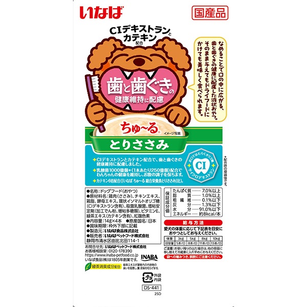 CIデキストランとカテキン配合で歯と歯ぐきの健康維持に配慮。乳酸菌1000億個配合(1本あたり250億個)配合。一度与えたらやみつきになるおいしさです。