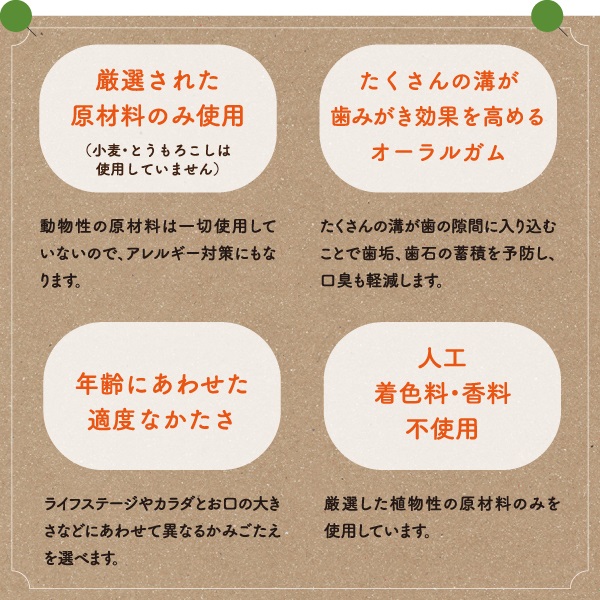 米国獣医口腔衛生協議会から、噛むことで歯垢・歯石蓄積のコントロールをサポートすると認定された商品です。