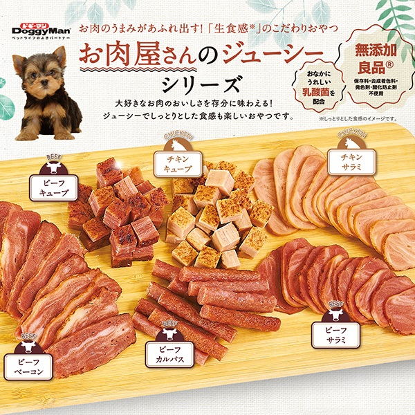 ・生のようなしっとりとした食感が楽しいおやつ《お肉屋さんのジューシー》シリーズです。