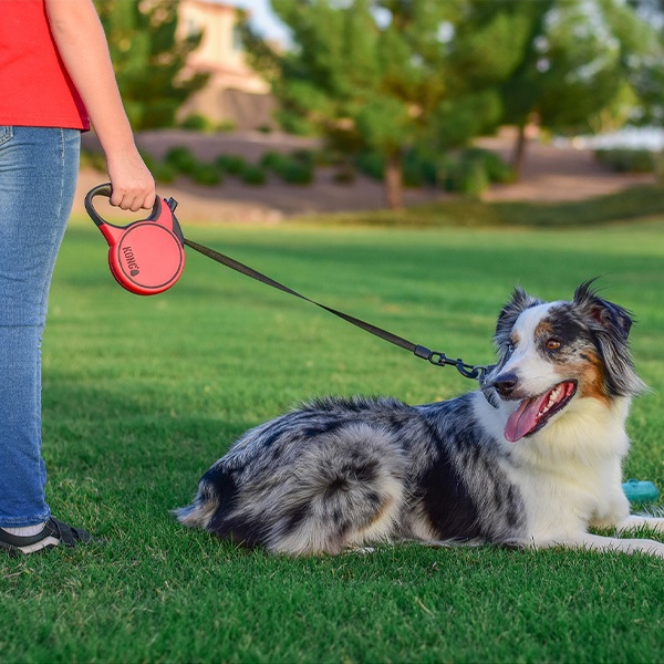 日常の散歩はもちろん、お気に入りのコースの散歩にも最適なオールラウンド。ソフトで握りやすく滑りにくいハンドルで、反射材を編み込んだテープタイプの安全設計。