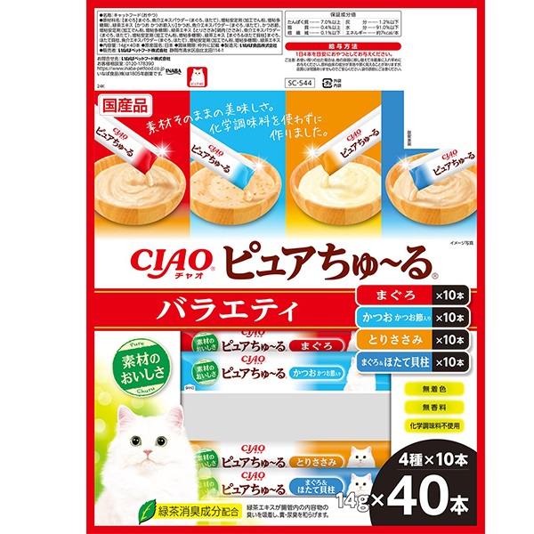 - 【まぐろ】まぐろ、魚介エキスパウダー(まぐろ、ほたて)、増粘安定剤(加工でん粉、増粘多糖類)、緑茶エキス【かつお かつお節入り】かつお、魚介エキスパウダー(まぐろ、ほたて)、かつお節、増粘安定剤(加工でん粉、増粘多糖類)、緑茶エキス【とりささみ】鶏肉(ささみ)、魚介エキスパウダー(まぐろ、ほたて)、増粘安定剤(加工でん粉、増粘多糖類)、緑茶エキス【まぐろ&ほたて貝柱】まぐろ、ほたて貝柱、魚介エキスパウダー(まぐろ、ほたて)、増粘安定剤(加工でん粉、増粘多糖類)、緑茶エキス