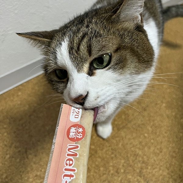 そのまま・崩して・内袋のままお湯で温めて…ねこちゃんの好みに合わせて与えられる便利なスティックタイプ。