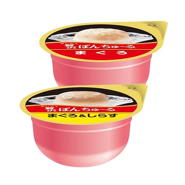 - <まぐろ>かつお、まぐろ、まぐろエキス、糖類(オリゴ糖等)、植物性油脂、増粘安定剤(加工でん粉、増粘多糖類)、ミネラル類(Na、P、Cl)、調味料(アミノ酸)、ビタミンE、紅麹色素、緑茶エキス