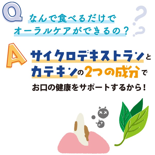 カテキン、サイクロデキストラン配合で、歯と歯ぐきの健康維持に配慮しました。