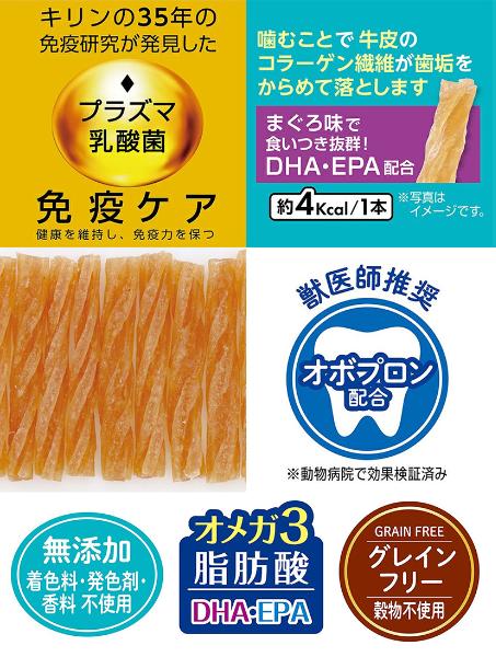 毎日のおやつに乳酸菌プラス。キリンの35年の研究から生まれたプラズマ乳酸菌配合。健康を維持し免疫力を保つ。オメガ3脂肪酸(DHA・EPA)配合。獣医師推奨オボプロン配合