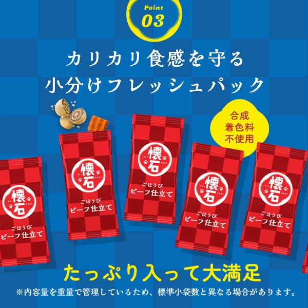- たんぱく質:24.0%以上、脂質:7.5%以上、粗繊維:4.0%以下、灰分:9.0%以下、水分:10.0%以下