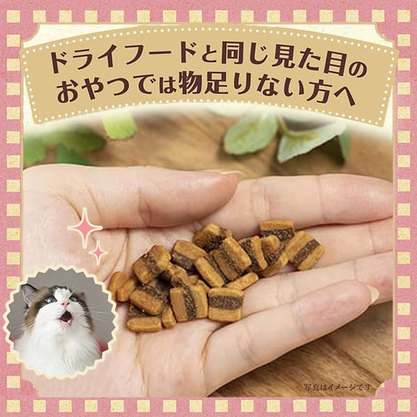 - ●かつお味/小麦粉、肉類(チキンエキス、ささみ)、油脂類、酵母エキス、魚介類(フィッシュエキス、まぐろエキス、かつおエキス、かつお節)、ビール酵母、糖類、調味料、酸化防止剤(ミックストコフェロール、ハーブエキス)●まぐろ・チキン味/小麦粉、肉類(チキンエキス、ささみ)、油脂類、酵母エキス、魚介類(フィッシュエキス、まぐろエキス、かつおエキス、まぐろ節)、ビール酵母、糖類、調味料、酸化防止剤(ミックストコフェロール、ハーブエキス)