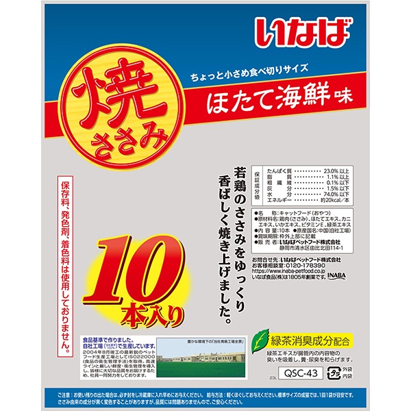 やわらか若鶏のささみを香り豊かに焼き上げました。保存料、着色料は使用していません。