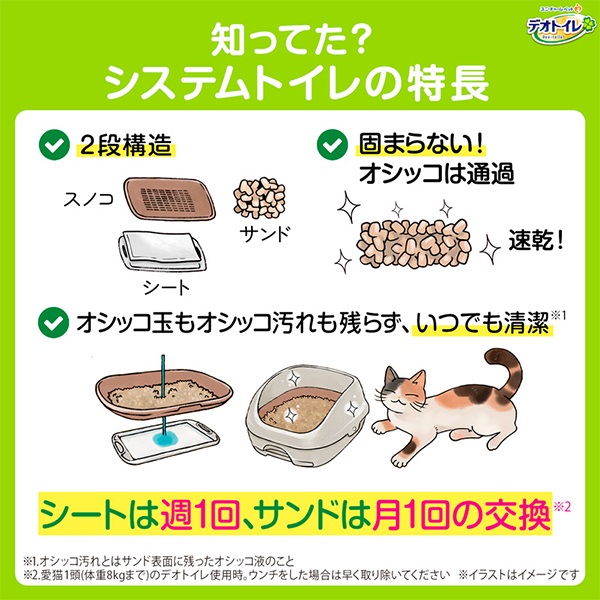 ※1.愛猫1頭(体重8kgまで)のデオトイレ使用時。ウンチをした場合は早く取り除いてください