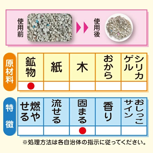 さらに固めて閉じ込めることで、ニオイの広がりも抑えてくれます。素早く、小さく固まるので後処理も簡単。