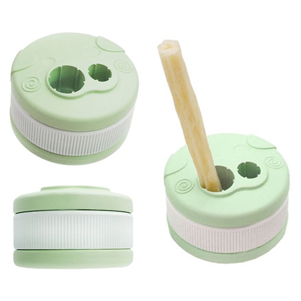 デンタルガムを穴に入れ上下フタを回すだけでしっかり固定、本品を愛犬が手で押さえガムをゆっくり長く噛みやすくなります。