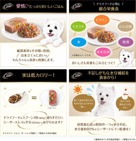 - タンパク質:5.0%以上、脂質:2.5%以上、粗繊維:1.5%以下、灰分:3.0%以下、水分:89.0%以下