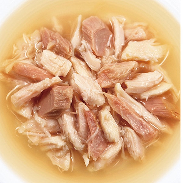 - 鶏肉(ささみ)、まぐろ、ほたてエキス、DHA・EPA含有精製魚油、オリゴ糖、増粘安定剤(加工でん粉、増粘多糖類)、ミルクカルシウム、ビタミンE、クエン酸カリウム、紅麹色素、緑茶エキス、カロテノイド色素