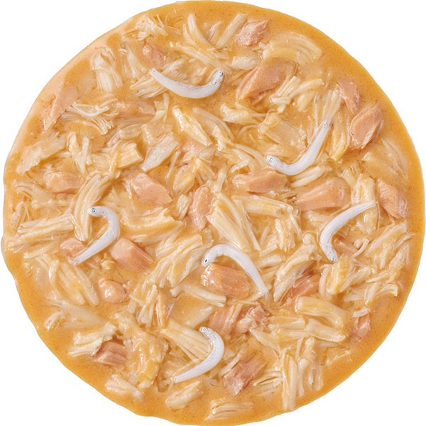 鶏肉(ささみ)、まぐろ、しらす、植物性油脂、米粉、コーンスターチ、かつお節エキス、糖類(オリゴ糖等)、殺菌乳酸菌、ミネラル類(Ca、Cu、Mn、Zn、l、Fe、Na、P、Cl、K)、セルロース、増粘安定剤(加工でん粉、増粘多糖類)、調味料(アミノ酸)、ビタミン類(A、D3、E、B1、B2、B6、K、コリン、ビオチン、葉酸)、タウリン、紅麹色素
