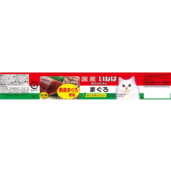 まぐろ、まぐろエキス、オリゴ糖、ビタミン類(A、E、B1、B6)、増粘安定剤(カラギナン)、ミネラル類(Ca、Cu、Mn、Zn、I)、緑茶エキス、タウリン