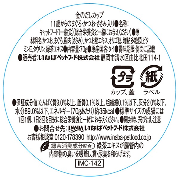 いなば 金のだしカップ 11歳からのまぐろ・かつお・ささみ入り 70g×6コ