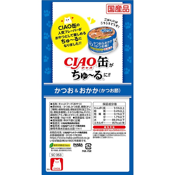 チャオ缶の人気フレーバーがおやつとして楽しめるちゅ~るになりました!