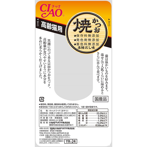 - 宗田鰹、かつお節エキス、昆布エキス、増粘剤(加工でん粉)、グルコサミン、増粘多糖類、ビタミンE、緑茶エキス