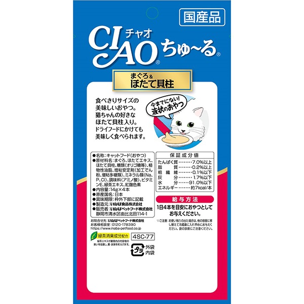 【あす宅】【セット販売】チャオ ちゅ~る まぐろ&ほたて貝柱 (14g×4本)×6コ [ちゅーる]