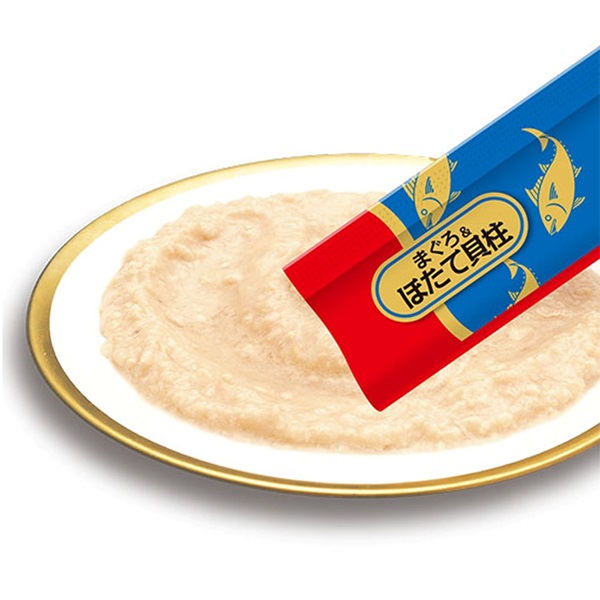 まぐろ、ほたてエキス、ほたて貝柱、糖類(オリゴ糖等)、植物性油脂、増粘剤(加工でん粉)、増粘多糖類、ミネラル類、調味料(アミノ酸等)、ビタミンE、緑茶エキス、紅麹色素