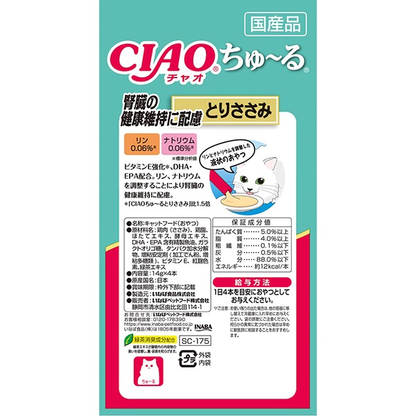 チャオ ちゅ~るシリーズに新しいフレーバーが仲間入り。・腎臓の健康維持に配慮は、リンとナトリウムを調整しました。