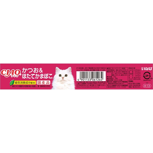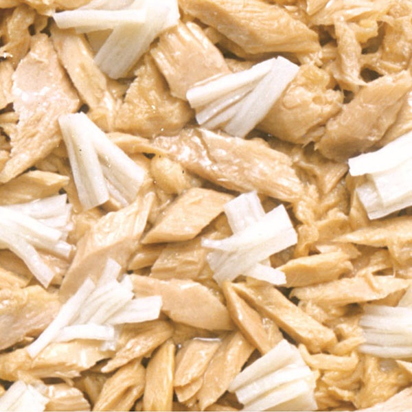 かつおの白身をベースに作りましたかつおの白身に、ほたての旨みがいっぱいのほたてかまぼこをフレークにして加えました。