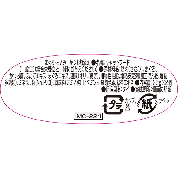 ・まぐろ・ささみのペーストに愛猫の好きな素材をトッピング。・少食の猫ちゃんにも与えやすい食べきりサイズ。・カップ容器なので開けやすくごみ処理も簡単。