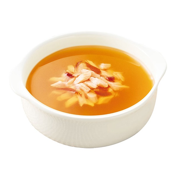 まぐろやかつお、ほたての旨味たっぷりのスープに、猫ちゃんの好きな素材をトッピング。