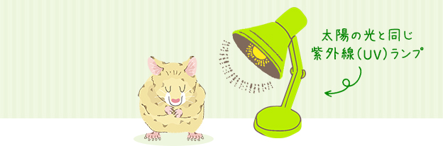 太陽の光を毎日浴びることが理想ですが、小動物用の紫外線(UV)ランプで代用することも可能です。